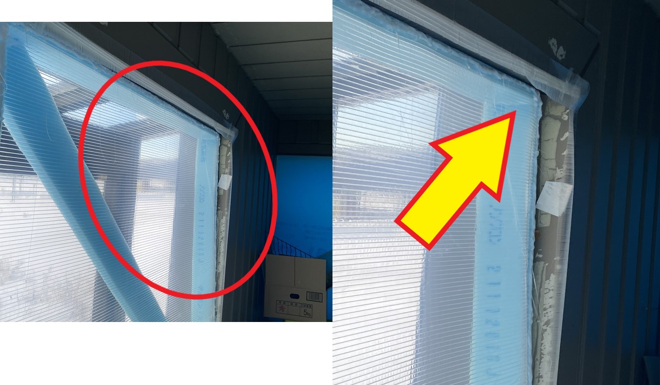 ふと窓を見ると、手作りの防寒用の窓枠がずれてる!