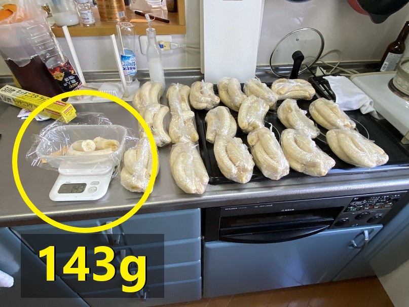 「300g」ずつにラップで小分けを始めて、最後の片付けまで2時間近くかかります。