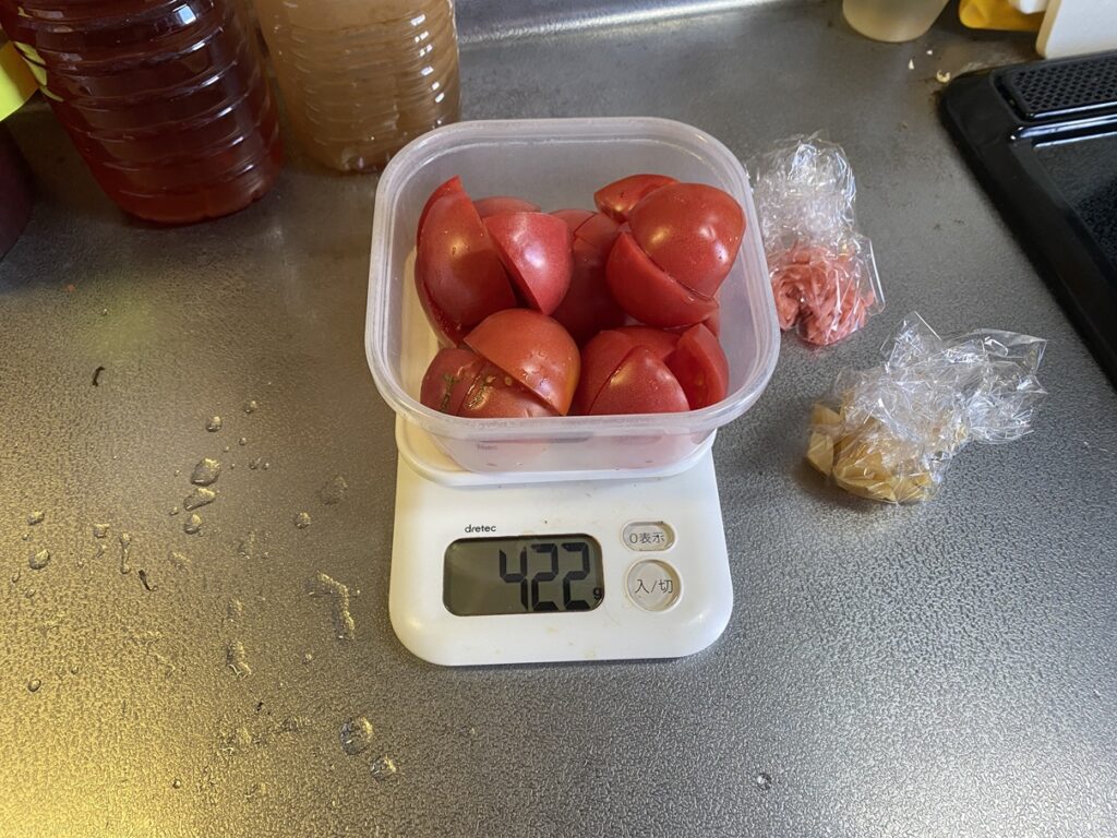 隣に住む父が家庭菜園で作ったトマトを玄関先にたくさん置いてくれます。