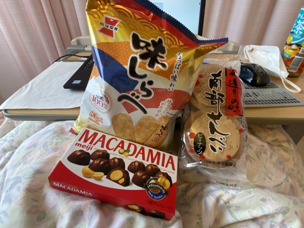 近くにある売店へかごを持って入りお買い物、やっぱりお店の中は4毒まみれ、しかし、することが無いと食べのが唯一の楽しみに。